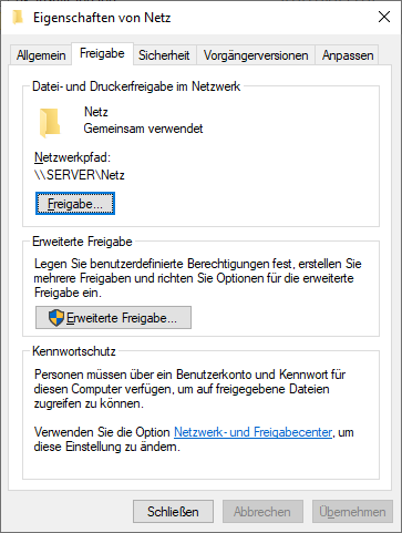 Udostępnienie folderu jest konieczne, aby inne komputery klienckie mogły uzyskać dostęp do danych serwera. Klienci mają dostęp tylko do danych serwera, które zostały udostępnione.