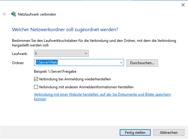 Dysk „Folder (\Server) (I:)” jest teraz dostępny.